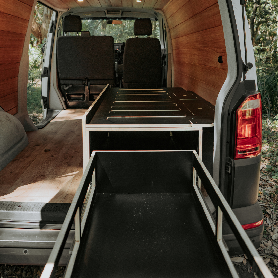 Super easy. Our kits are built with DIY installation in mind — they come fully assembled and are ready to lift into place. Securing the kit to your van is up to you, but you can check out our installation videos to see how we do it in the workshop.