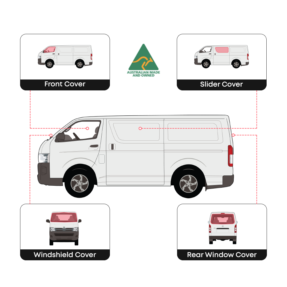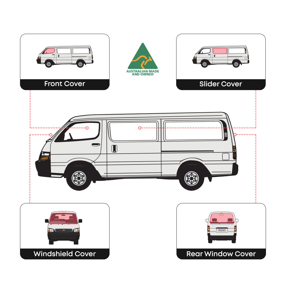 Custom fit to suit your Toyota Hiace, our insulated window covers provide a practical solution to temperature control and privacy. Find out more below about our insulated van window covers which are made right here in Australia!